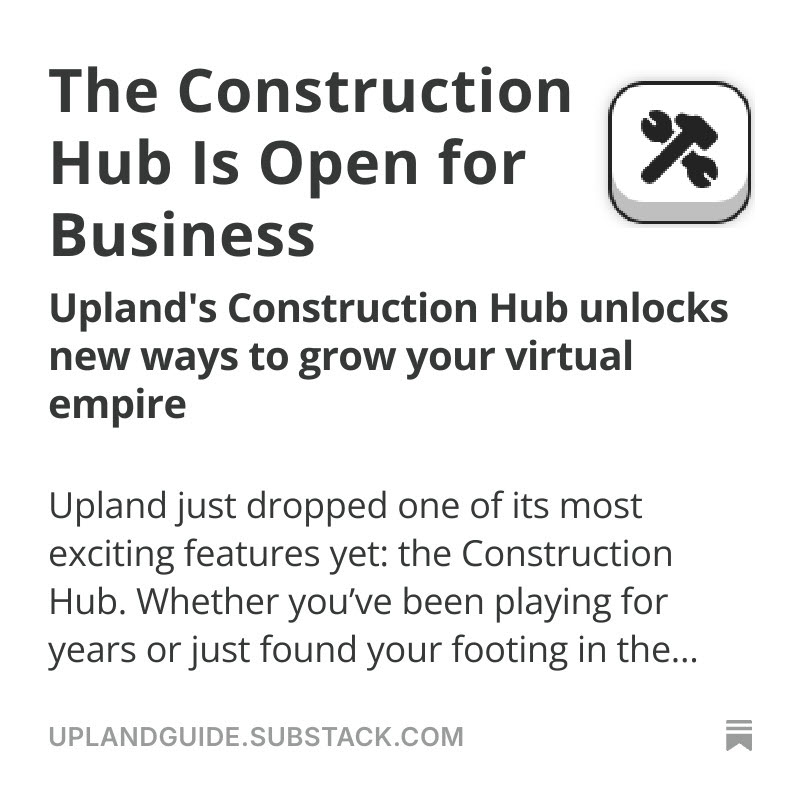 The Upland Construction Hub is a metaverse marketplace that enables Uplanders to build structures they don’t own the blueprints for. With an increasing variety of types of structures that players can construct in the metaverse it will be nearly impossible for any player to have construction ability of all structures. Each service structures is only available for purchase for a limited time. Owning a service or residential structure gives you the indefinite building rights for that structure, called blueprint. The construction hub provides players an opportunity to construct a discontinued blueprint on one of their properties. This is true not only for service structure blueprints, but there are also limited residential structure blueprints that exist.